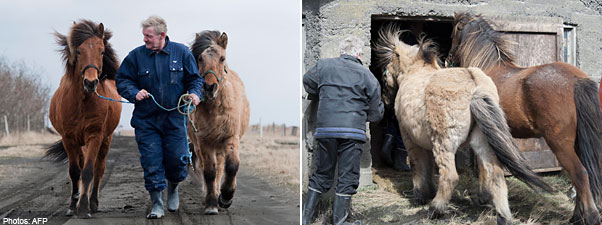Shutting the last of his 17 horses into an old barn, Ingi Sveinbjoernsson, 56, breathes a sigh of relief.