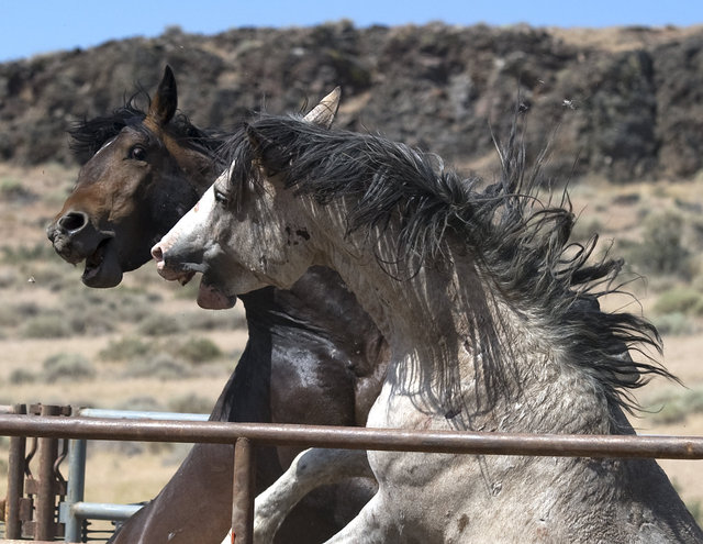 BLM's lack of understanding wild horse behavior is evident when they put Band Stallions together with deadly potential ~ Photo by Hector Amezcua