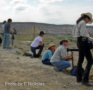 (Sept. 2009) We had been waiting for quite some time. The BLM guards told us that the helicopter was bringing in another family band of Pryor Mt. wild horses but the clock continued to tick. High up atop the observation bluff we equine advocates sat down and crouched behind a feeble jute fence, as ordered, in an alleged effort to “hide” ourselves from any approaching wild horses that would be some 200 yards away.