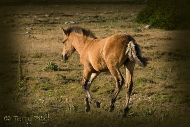 He did not know what to do, there was the ever increasing sound, a pressure from behind and above, dust, running family and he could not keep up. The harder he tried the further away his family band seemed to pull away. The dust stung his eyes, his lungs were on fire, he gave his small legs the freedom to run as fast as they could to escape the giant, mechanical bird that threatened to consume him. He never saw the gulch, the drop-off, the dried creek bed as he went airborne over the edge in a cloud of dust and landed on the hard gravel bed, below. There was a snap, a bolt of searing hot pain and his right front let would not work nor let him stand. He struggled and flopped about the dried creek as the roaring, man-made condor descended upon him; from out of nowhere strange horses appeared with odd creatures on their backs. He felt no warmth, he felt no love, he now felt only one thing, fear.