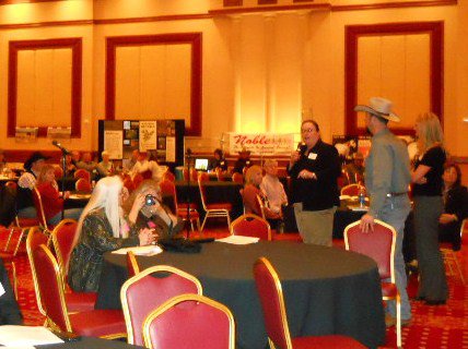 Wallis and Duquette speaking to empty chairs at Summit Grand Opening ~ photo courtesy of Summit of the Horse