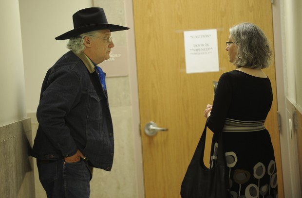 Jim Leachman of the Leachman Cattle Co., and the Hairpin Cavvy, a horse breeding operation, talks with Yellowstone County Public Defender Roberta Drew ~ photo by David Grubbs