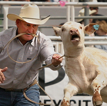 “In calf roping, baby calves weighing less than 300 pounds are forced to run at speeds in excess of 25 miles per hour when they are roped. The reason they run at such high speeds is that they are being tortured in the holding chute. Their tails are twisted, their tails are rubbed back and forth over the steel bars of the chute and they are shocked with electric prods until the gate opens. They burst out of the chute at top speed only to be stopped short — clotheslined — with a choking rope around the neck. They are often injured and some are killed. These calves would still be with their mothers on pasture if they were not in the rodeo.