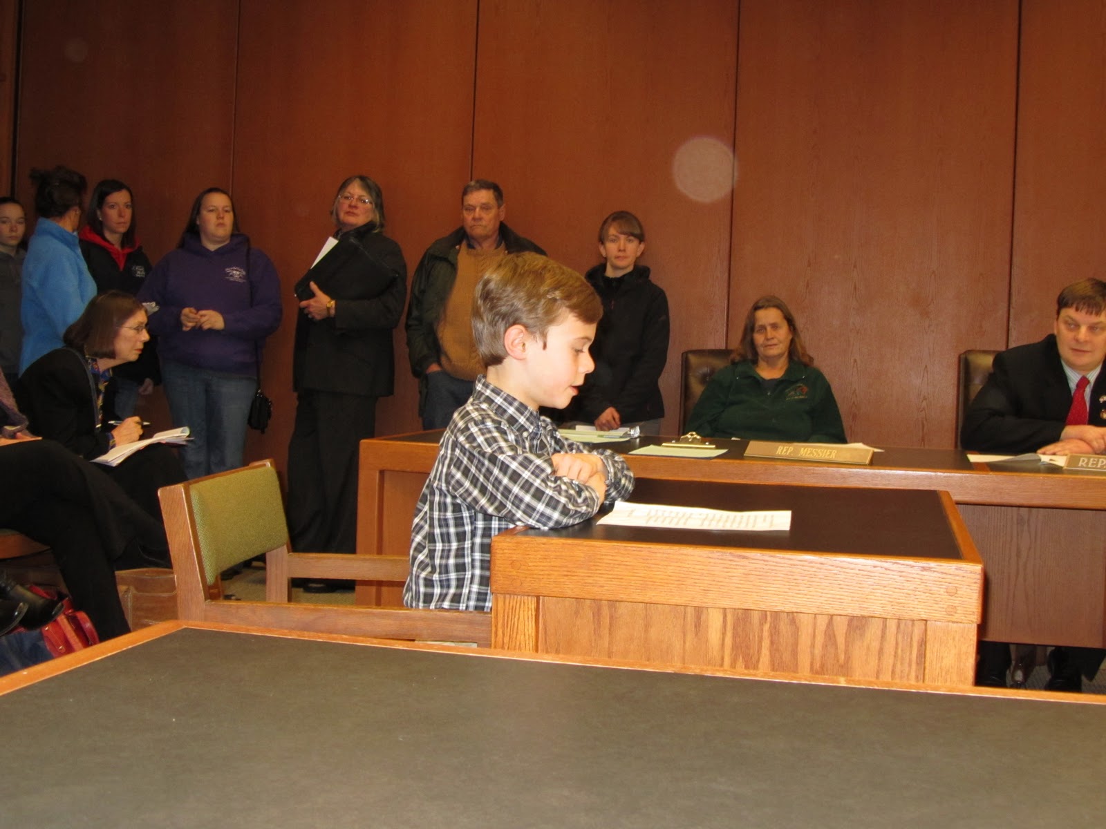 Declan Testifying at the New Hampshire Legislature in January ~ photo courtesy of Children 4 Horses