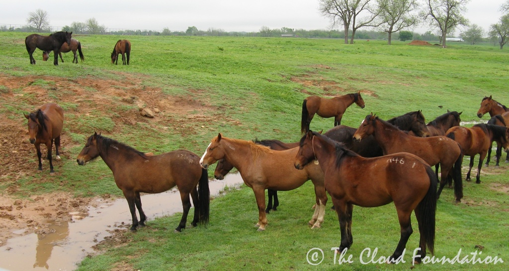 “As we were talking, I noticed several very small foals about 50 yards away in a muddy pen without their mothers. BLM told us that horses in long-term holding are only rounded up once a year. At that time the foals are weaned and shipped to Pauls Valley for adoption. However, some of these foals are as young as 2 months old! Our immediate question was “Why?” The answer? The private contractor would have to feed those few small foals for another year if they weren’t removed.