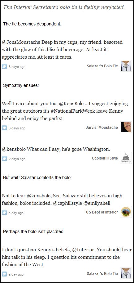 When the Loop asked an Interior spokesman for comment about just where Salazar stands on the bolo tie issue, we got this response, via Twitter, which should give the poor neglected Western cravat some hope: