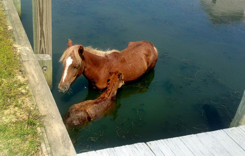 COROLLA — An off-duty Currituck sheriff’s deputy rescued a month-old wild horse from drowning Tuesday, but another foal in the same predicament last week wasn’t so lucky.