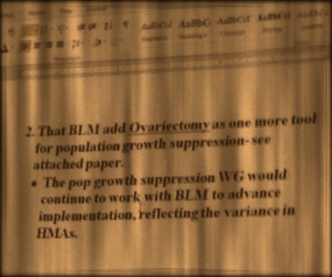 Even in the most sterile surgery room, spaying mares is rift with consequences. To suggest they be spayed outside, in the dirt is unbelieveable. But this is the BLM, protector of wild horses we’re talking about, right?