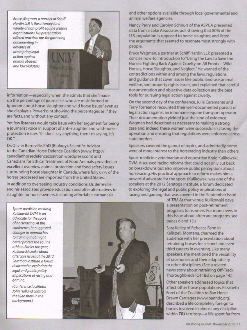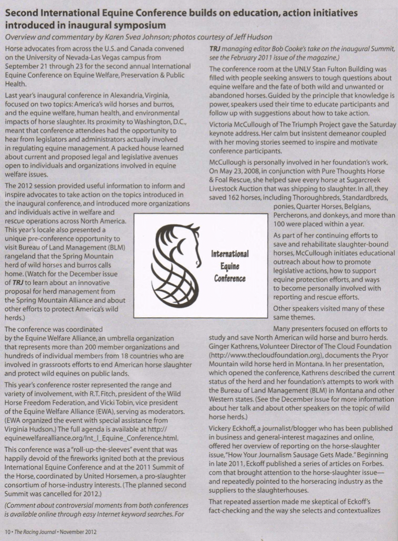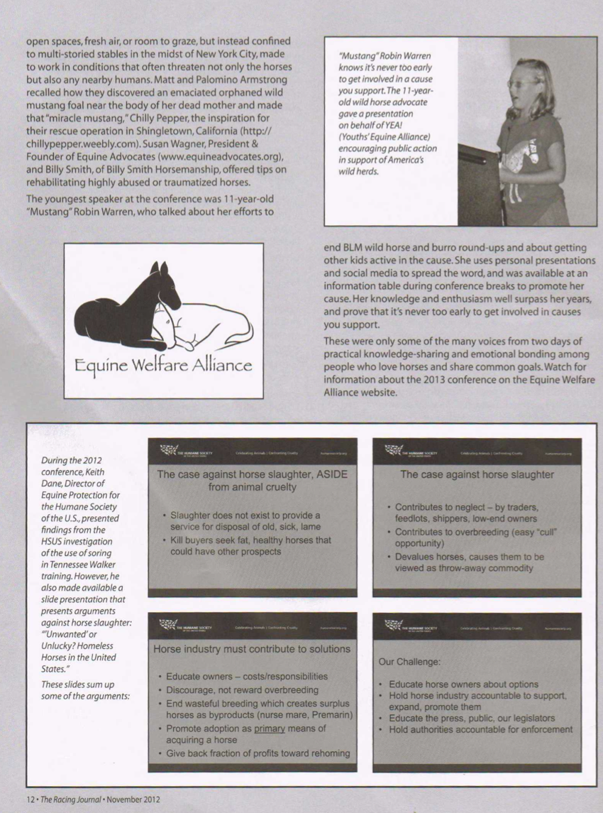Article and information supplied by Jeff Hudson of the Equine Welfare Alliance