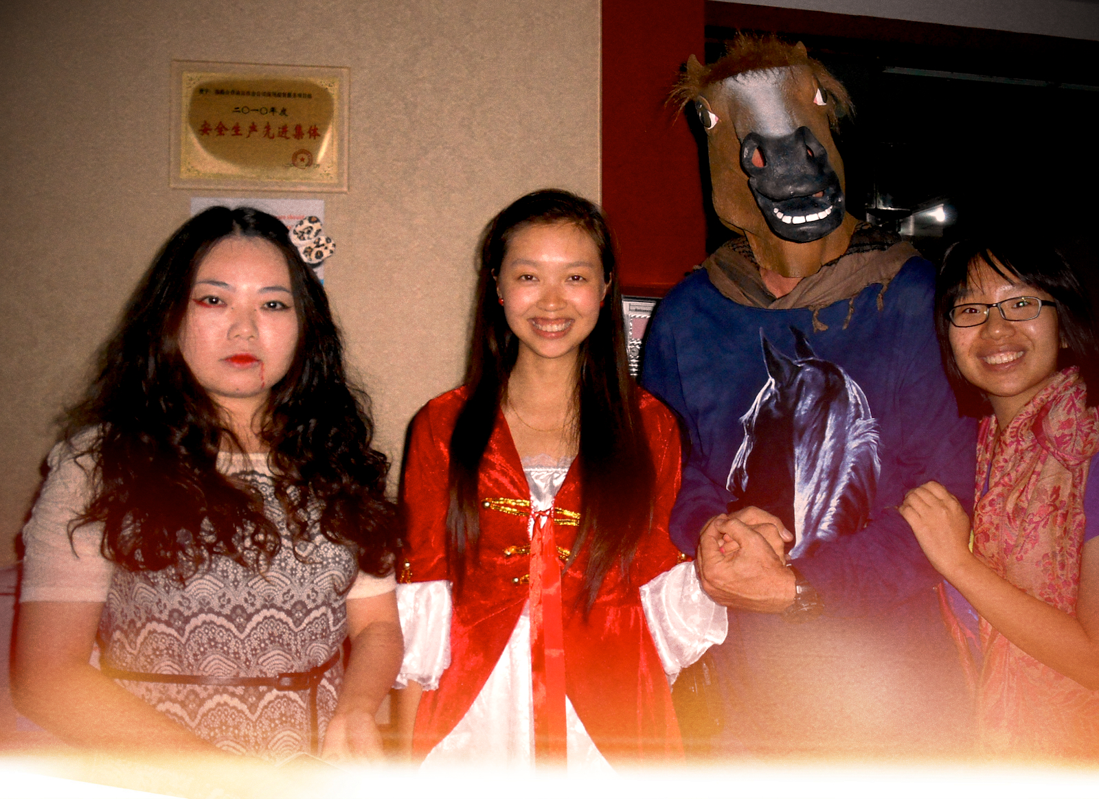 And last but not least is a photo of yours truly at a Halloween party, at an undisclosed location, with several friends of mine. I sent this photo to my good friend and fellow Wrangler Iced Tea drinking buddy, Jerry Finch, and asked him if he could pick out which person in the photo was me…well he guessed the Chinese girl costume on the left as the make-up was bad (on purpose) but I will let you decide; I still can’t figure out who the guy is that is half man half horse…Happy Halloween everyone! ~ R.T.