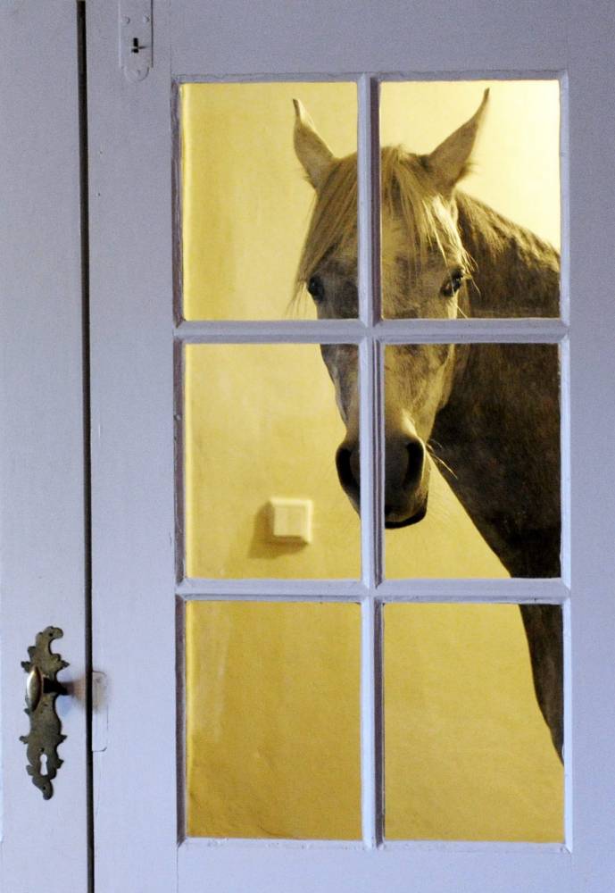 This is hilarious! I would have to say the horse looks happy and free, even if free to him is inside his owner’s home. Thanks for sharing such a cute story!