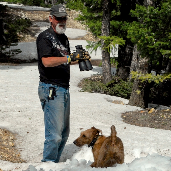 RT and I, with our loyal companion, Quinn, spend four days together, three of them on Tillett Ridge. Quinn is particularly fond of his new friend, RT, who serves as his “seat belt,” keeping him from sliding onto the floor board on the bumpy roads.