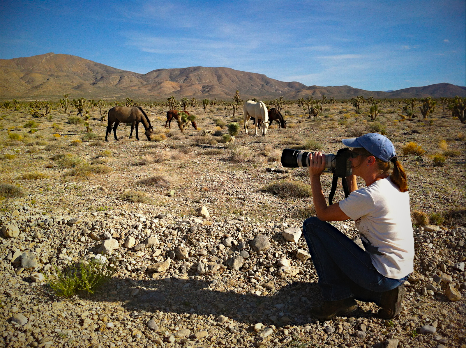 Terry Fitch of Wild Horse Freedom Federation photographing members of the Cold Creek Herd, Sept. 2012 ~ photo by R.T. Fitch