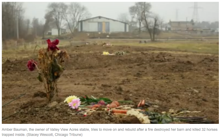 Amber Bauman, the owner of Valley View Acres stable, tries to move on and rebuild after a fire destroyed her barn and killed 32 horses trapped inside. (Stacey Wescott, Chicago Tribune)