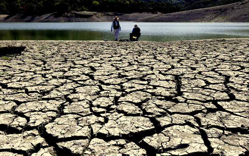 Cracks in the dry bed of the Stevens Creek Reservoir in Cupertino, Calif. Photo credit: Marcio Jose Sanchez