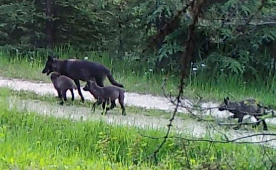 A motion-triggered wildlife camera at the den site of the Profanity Peak pack captures pack members on camera last June 30. Seven pack members were killed by Department of Fish and Wildlife after the wolves killed cattle grazing on public land at the Colville National Forest. (WSU wolf livestock research program)