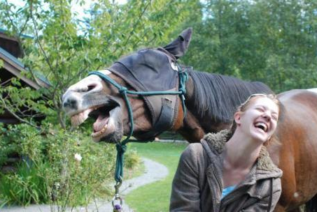 First up is a young woman who thought she was taking a happy picture standing in front of her horse when just as the shutter clicked, or iPhone, the horse broke out into his own happy smile that, if you look closely, appears to match that of his human buddy. Remarkable.