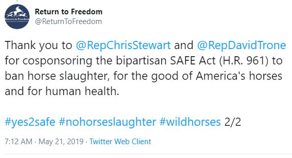 Rep. Chris Stewart signing onto the SAFE Act was not only shocking, but the timing was interesting. It happened only about a month after Return to Freedom, ASPCA and HSUS signed onto a proposal that sells out America’s wild horses & burros.