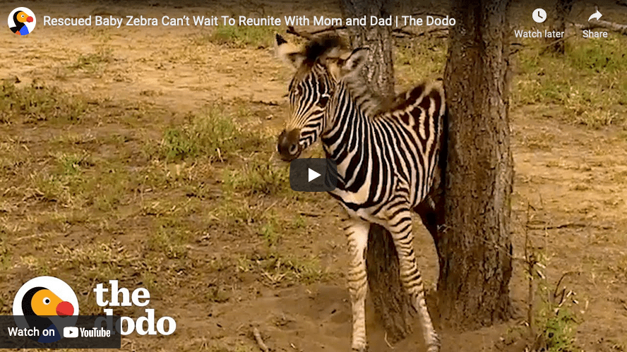 Source: The Dodo People on a safari spotted a baby zebra who was stuck in between two trees. They freed the baby and were rewarded by being able to watch her reunite with her parents.