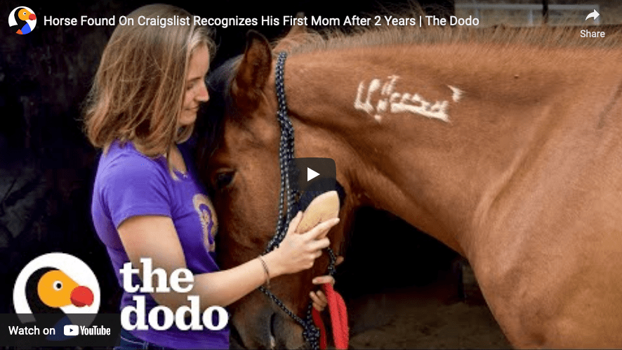 Feel Good Sunday: Video~Horse Found On Craigslist Recognizes His First Mom After 2 Years