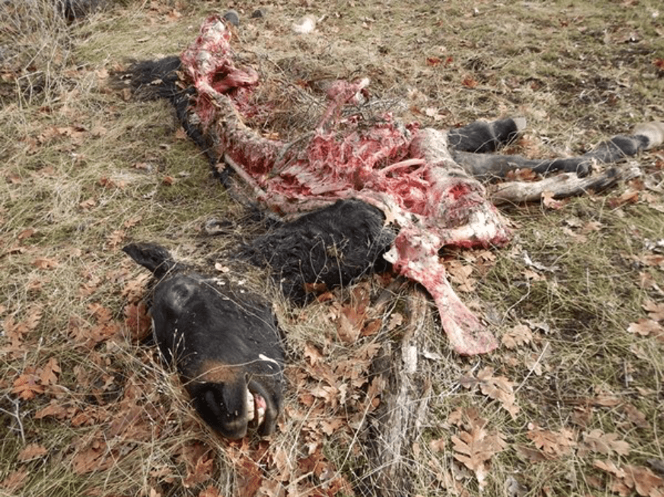 This young colt (~18-mos. old) was taken at neck by a mountain lion. Over a period of a few days, other predators (bears, coyotes, golden eagles) scavenged the carcass. Photo: William E. Simpson II