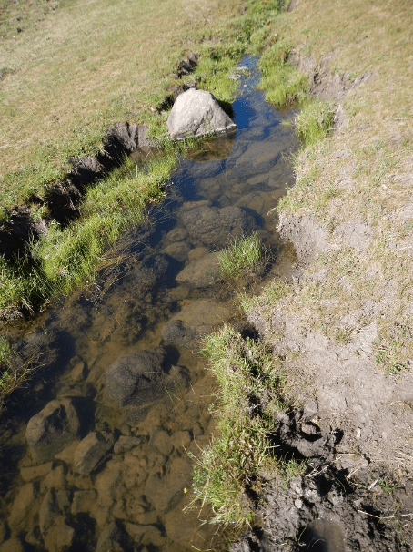 The herd of wild horses in the prior photo are using this stream from water, which is centered in the alpine riparian meadow. Even with over 50-wild horse using this water resource, the turbidity of this stream is low. Photo: William E. Simpson II