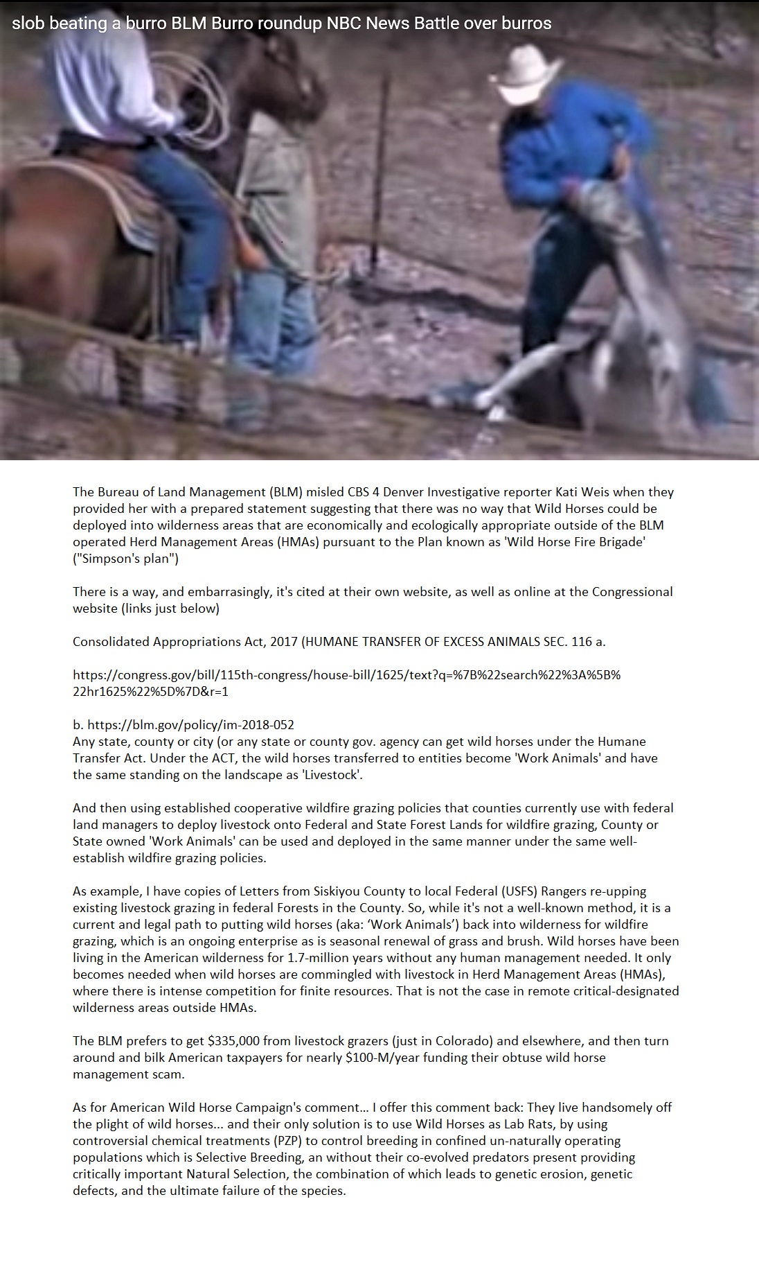 One of dozens of examples of BLM malfeasance: BLM contractor abusing an exhausted burro that was hit by a helicopter after being chased for miles!