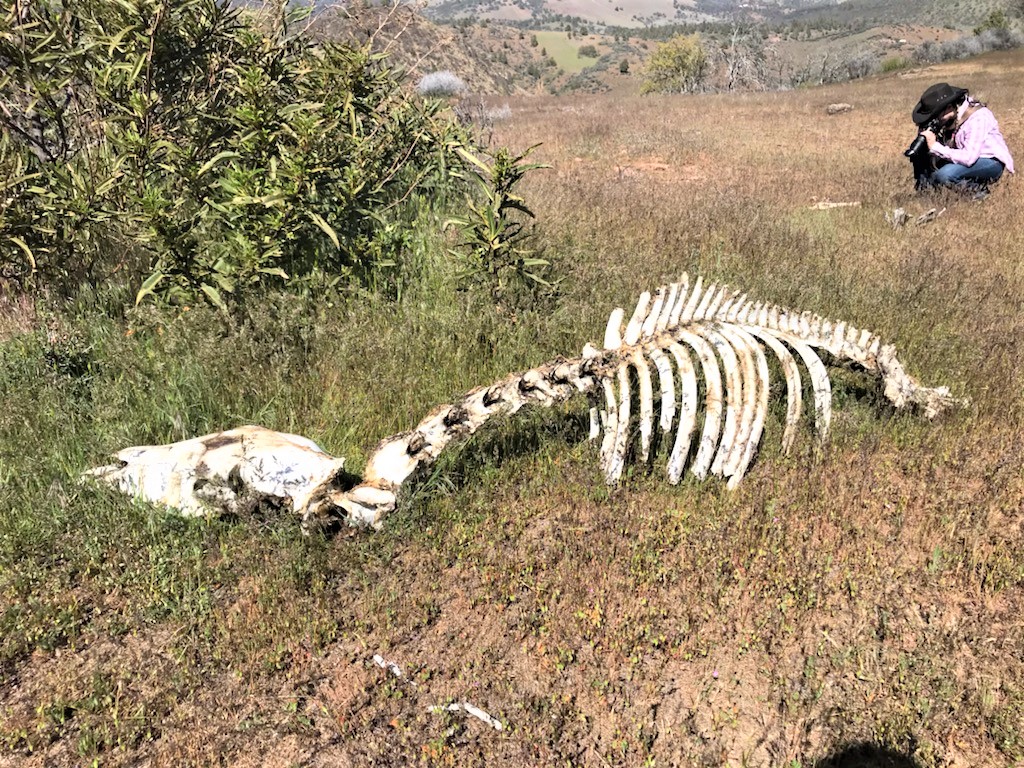 In the foregoing photo, wild horse researcher Michelle Gough is gathering numerous photographs of the remains of a wild horse, which will be analyzed further.
