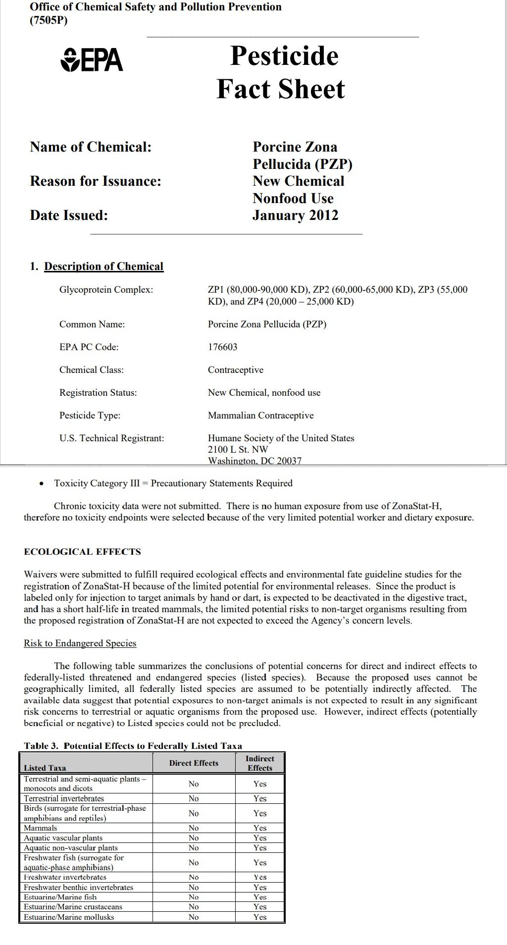 Given the cited toxicity of PZP, why on earth would anyone inject this stuff into any living animal, unless the intention was eradication.