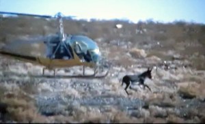 Typical roundup where burros and horses, including foals, are hit with helicopters.